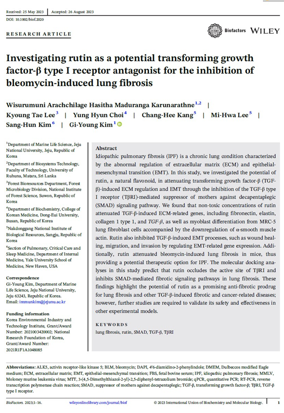 한편, 이번 연구 결과는 국제 학술지인 바이오팩터스(Biofactors)에 논문으로 게재되었다.