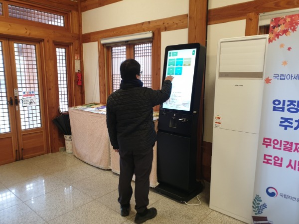 산림청 국립자연휴양림관리소는 국립아세안자연휴양림(경기 파주), 국립무의도자연휴양림(인천)에서 무인결제 시스템 ‘키오스크’로 입장객(숙박객 제외)은 입장료와 주차료를 간편하게 결제할 수 있게 되었다.