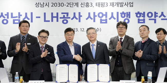 이날 오전 성남시청에서 열린 협약식에서 신상진 성남시장은 이한준 LH 사장과 지난 2 월 재개발 정비구역으로 지정된 태평 3, 신흥 3 구역에 대해 공공 사업시행자 지정을 위한 협약을 체결하고 본격적인 사업 시작을 알렸다.