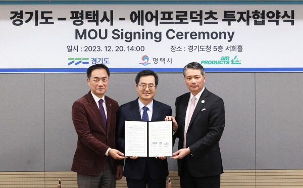 김동연 경기도지사는 20일 경기도청에서 윌버 목(Wilbur W. Mok) 에어프로덕츠 아시아대표, 정장선 평택시장과 이 같은 내용의 투자협약을 체결했다.