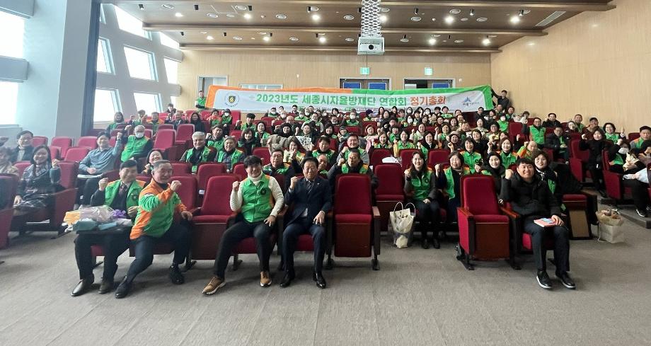 세종특별자치시 자율방재단이 지난 20일 조치원 복합커뮤니티센터 대공연장에서 자율방재단원 200여 명이 참석한 가운데 2023년 정기총회를 열었다.