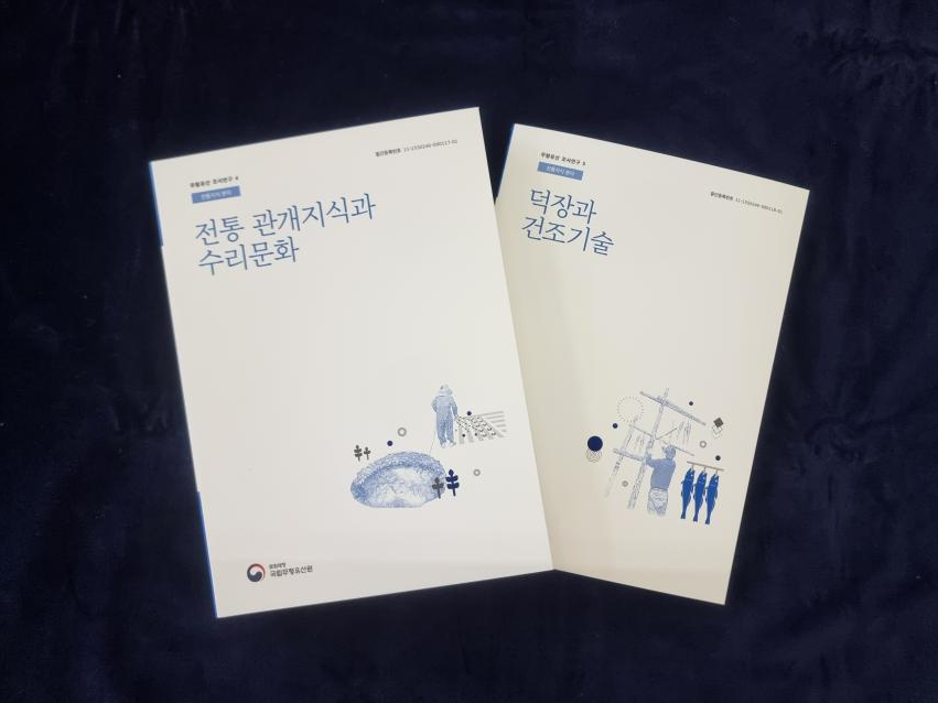 문화재청 국립무형유산원은 생활 속에서 전해져오는 무형유산을 조사하고 심층 연구해 ‘무형유산 조사연구’ 보고서를 시리즈로 발간하고 있으며, 최근 전통 관개지식과 덕장 건조기술 연구를 집대성한 보고서를 발간했다.