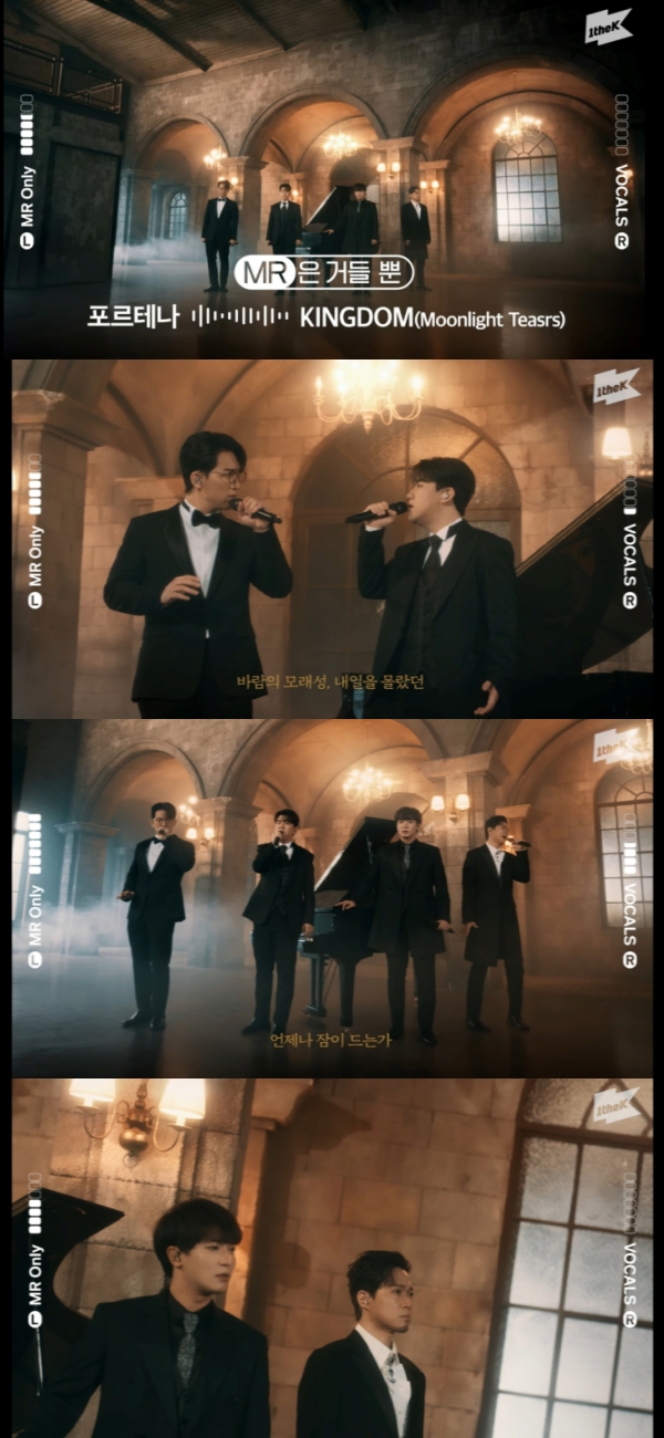 포르테나는 지난 20일 1theK(원더케이) 공식 유튜브 채널의 ‘MR은 거들 뿐’ 콘텐츠를 통해 첫 번째 미니앨범 'KINGDOM'의 타이틀곡 'KINGDOM(Moonlight Tears)'라이브 영상을 공개했다.