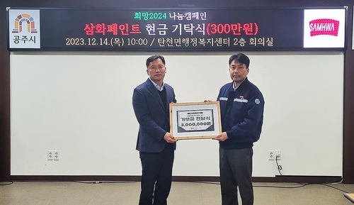 삼화페인트공업㈜은 공주 생산본부가 위치한 충청남도 공주시 탄천면에 성금 300만 원을 기탁했다. 기탁된 성금은 충남 사회복지공동모금회를 통해 취약계층에게 전달된다.