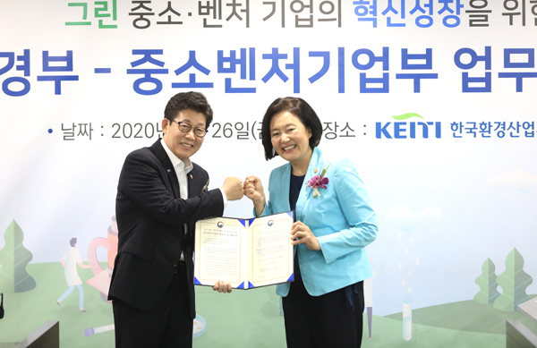 두 부처는 그린뉴딜 유망기업 프로젝트 등 ‘그린뉴딜’ 대책을 효율적으로 추진하고 그린 중소·벤처기업의 혁신성장을 공동으로 지원하기 위해 지난달 26일 업무협약을 체결한 바 있다.