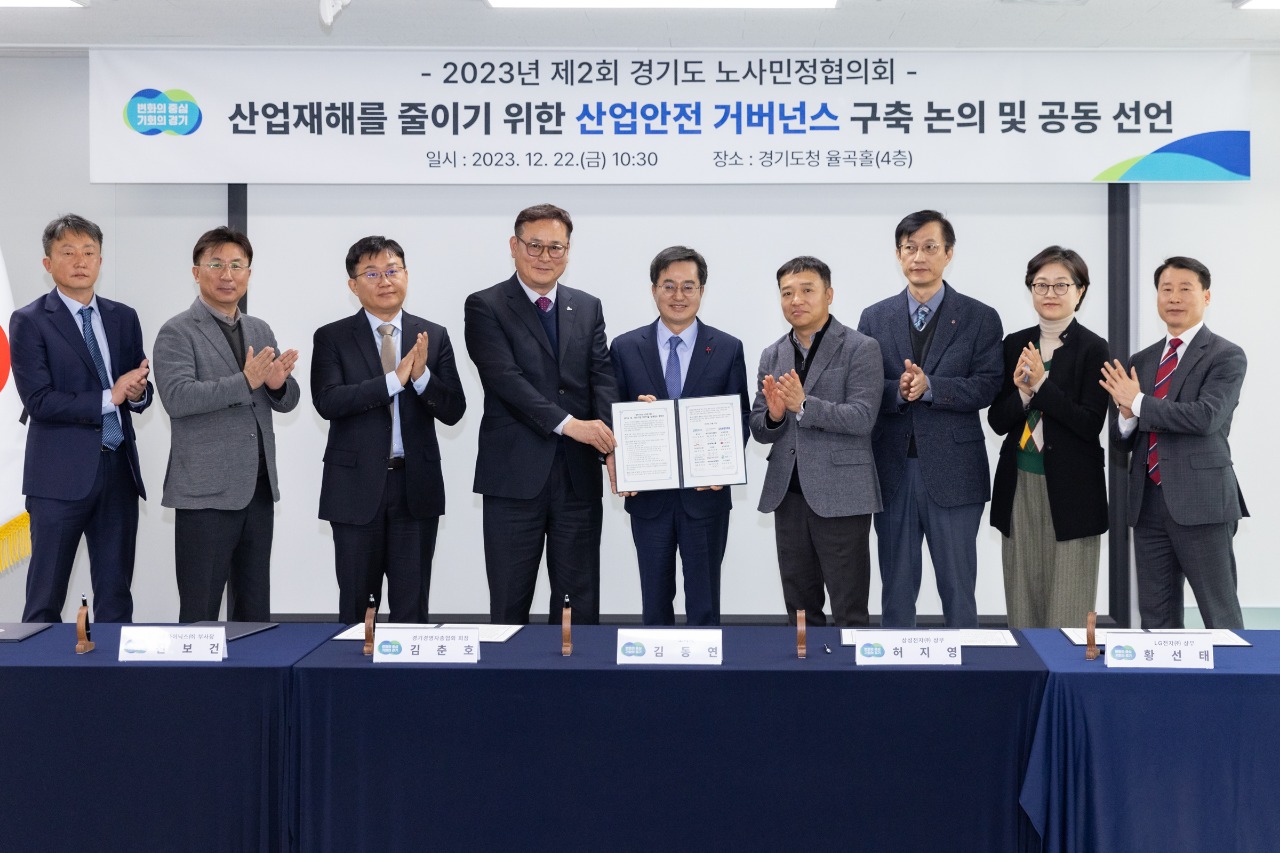 이어 “제가 취임한 뒤에 노동안전과를 만들었다. 그리고 올해 경기도 산재예방종합계획을 지방정부 최초로 수립했다”면서 “경기도는 정쟁과 이념을 떠나 중심을 잡고 앞으로 나갈 것이다. 경기도 노사민정협의회도 그동안 대화하고 타협해 왔던 결과를 살려서 성과를 냈으면 좋겠다”고 말했다.