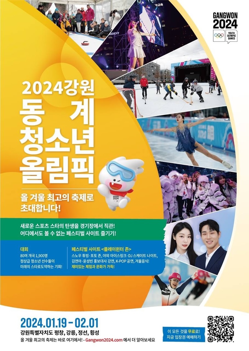 내년 1월 19일부터 2월 1일까지 2주간 강원특별자치도(평창·강릉·정선·횡성)에 열리는 이번 강원동계청소년올림픽은 80여 개국, 1900여 명의 청소년 선수들이 모여 7개 경기, 15개 종목에서 실력을 겨룬다.