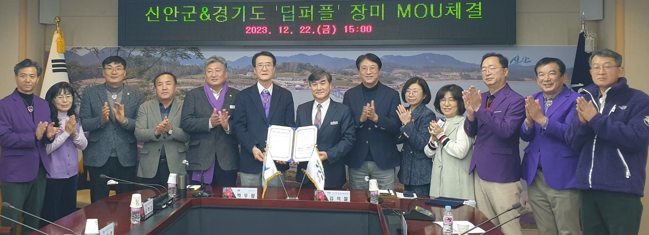 김석철 경기도농업기술원장과 박우량 신안군수는 22일 신안군청에서 이런 내용을 담은 ‘ 경기도 육성 장미 활용 퍼플컬러(보라색) 상생 협력’ 협약을 체결했다.
