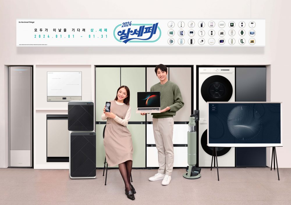 삼성전자가 2024 년을 맞아 고객들의 새로운 시작을 응원하는 ‘2024 삼성전자 세일 페스타 ( 이하 삼세페 )’ 를 1 월 한 달간 연다 .