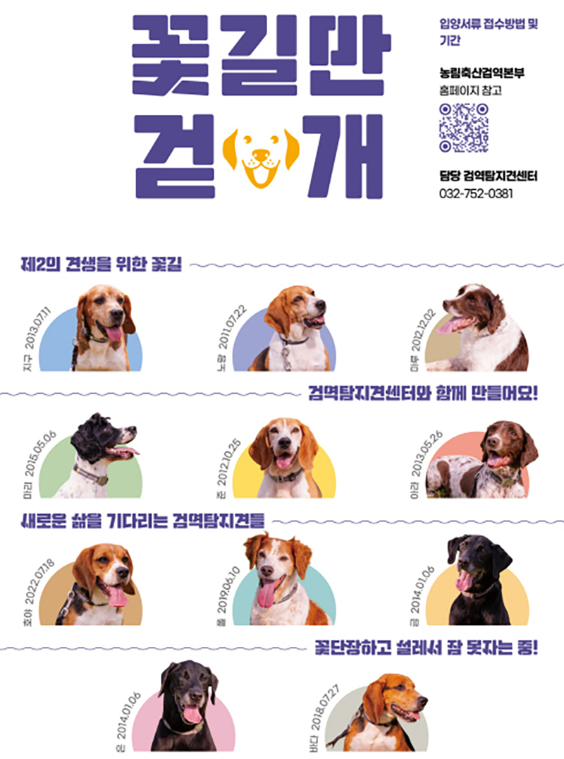 농림축산검역본부는 국가를 위해 헌신한 검역탐지견이 새 가족을 찾아 행복한 삶을 보낼 수 있도록 ‘2024년 검역탐지견 민간 입양’을 시작한다고 26일 밝혔다.