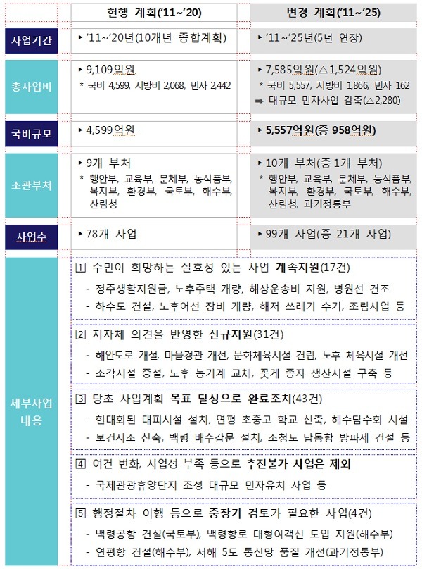 변경계획의 주요 내용을 보면 먼저 2025년까지 사업기간을 5년 연장해 당초 정부가 약속한 국비 투자 규모를 확대, 지원키로 했다.