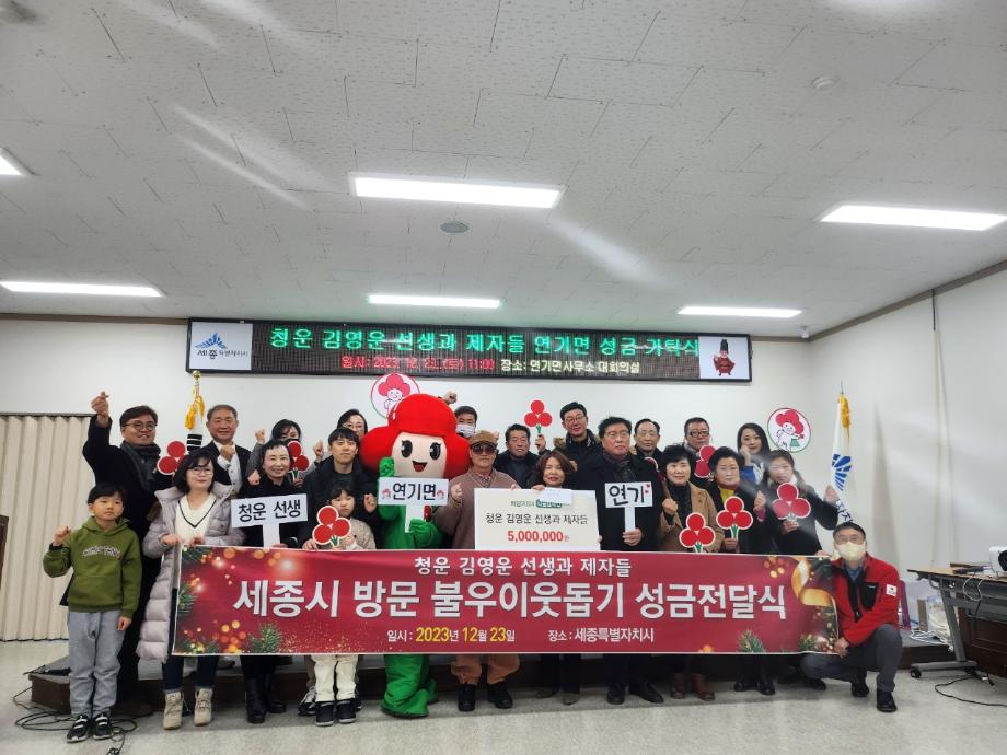 세종특별자치시 연기면에 연기면 출신 풍수지리연구가 청운 김영운 선생과 제자들이 직접 모은 이웃사랑 성금이 전달됐다.
