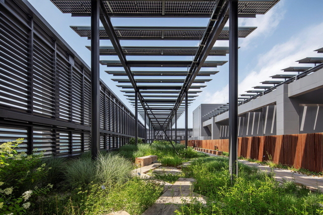 대상으로 선정된 HD 현대 글로벌 R&D 센터는 긴 선형의 데크 를 활용하여 작은 정원 산책로를 조성하고 옥상뿐만 아니라 지상 4 층과 공개 공지에도 풍부한 조경 공간을 조성해 건물 이용자 및 인근 주민들에게 휴게 쉼터를 제공한 점이 좋은 평가를 받았다 .
