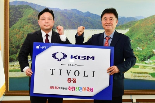 KG 모빌리티(www.kg-mobility.com, 이하 KGM)가 한국을 대표하는 겨울축제 '2024 화천산천어축제'에 '티볼리'를 경품차량으로 제공하는 등 후원을 위한 협약식을 체결했다고 28일 밝혔다.