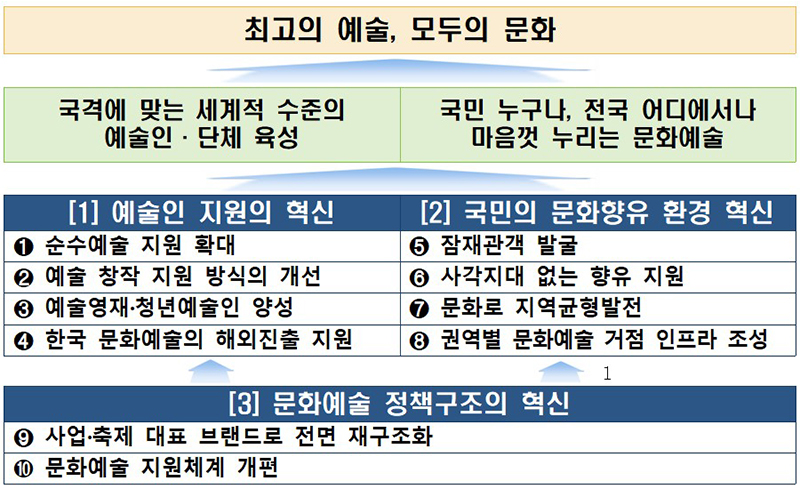 문화체육관광부는 이같은 내용을 포함한 ‘최고의 예술, 모두의 문화’를 위한 ‘문화예술 3대 혁신전략, 10대 핵심과제’를 28일 발표했다.