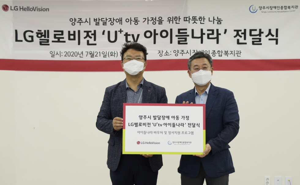 이에 LG헬로비전은 발달장애아동 가정에 아이들나라 서비스를 지원키로 했다. 양주시장애인종합복지관과 협력해 관내 긴급 돌봄이 필요한 가정을 선정하고, 아이들나라를 이용할 수 있도록 헬로tv 설치와 이용 요금을 2년간 무상 지원한다.