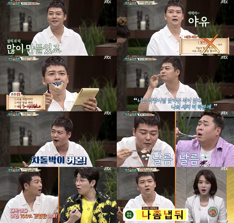 이날 방송에서는 퀴즈를 맞춘 출연자들에게 불판에 구워 먹을 수 있는 음식들이 포상으로 제공되었는데, 전현무는 선생님이 많이 하는 단골 멘트를 맞추는 퀴즈의 정답을 맞추며 출연진 중 처음으로 차돌박이를 먹는 영광을 누렸다.
