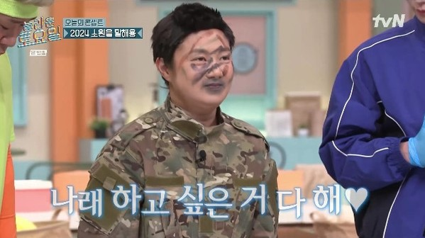 이날 박나래는 짧은 머리의 가발과 군복 차림, 얼굴에 거뭇거뭇한 분장을 칠하고 등장했다. 콘셉트와 맞지 않는 분장이었음에도 박나래는 ‘놀토’ 멤버들이 인정할 정도의 찰떡 소화력을 자랑, 현장에 있던 모두의 애정을 독차지했다.