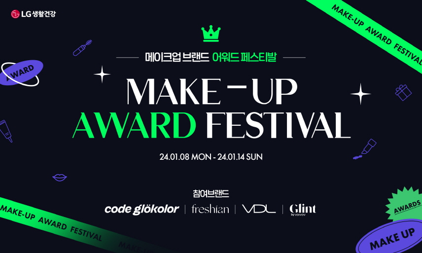 LG생활건강은 지난해 글린트·코드글로컬러·VDL·프레시안의 일부 품목이 뷰티 플랫폼 글로우픽과 뷰티 매거진 얼루어 등에서 어워드를 수상한 것을 기념해 8일부터 색조 제품 할인 행사인 ‘메이크업 브랜드 어워드 페스티발’을 진행한다.
