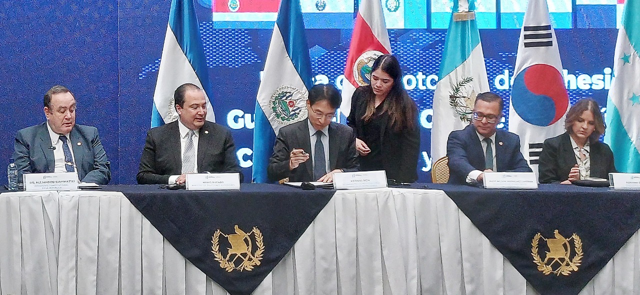 알레한드로 잠마테이 과테말라 대통령 임석 하에 우리나라는 노건기 산업통상자원부 통상교섭실장이 정부를 대표해 서명했고, 중미 측은 마리오 부까로 과테말라 외교장관 등 중미 6개국이 서명했다.