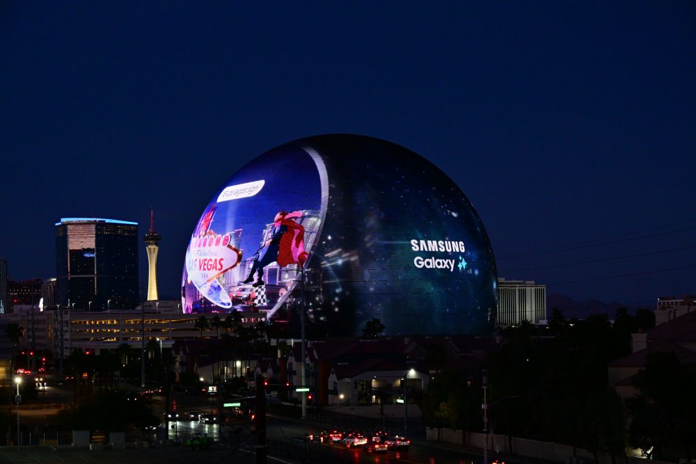 삼성전자가 미국 라스베이거스의 랜드마크 스피어(Sphere)에서 ‘갤럭시 AI’에 대한 기대감을 높이는 대규모 디지털 티징 영상을 선보였다.
