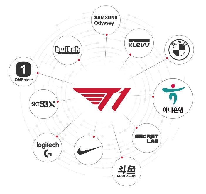 T1은 하나은행 외에도 ▲글로벌 자동차 메이커 BMW ▲나이키 등 게임 · e스포츠와 직접적인 관계없는 기업들과도 다양한 파트너십을 체결한 바 있다.