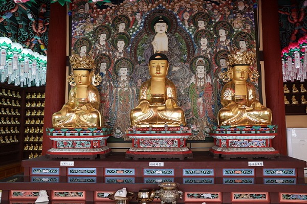 ▲ 군위 인각사 석조아미타여래삼존좌상 및 목조대좌