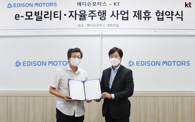 에디슨모터스는 전기버스와 전기트럭 등 특수목적 차량을 개발 및 제조하는 기업이다. 친환경 자율주행 전기차 개발을 위해 KT는 통합관제 원격제어 등 자율주행 소프트웨어 기술 영역을 전담하고, 에디슨모터스는 전기차 차체 등 하드웨어를 담당한다. 양사는 자율주행 전기버스를 시작으로 트럭, 청소차 등 다양한 특수목적 차량까지 기술협력을 확대해나갈 계획이다.