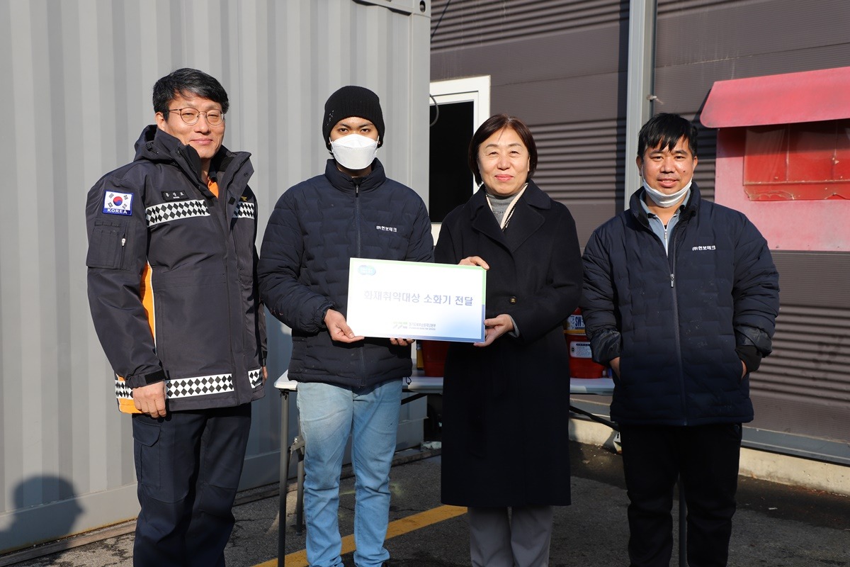 홍장표 북부소방재난본부장은 산업단지 내 공장시설과 외국인 기숙사 곳곳을 둘러보며 화재취약요인을 점검하고 외국인 기숙사에는 소화기와 주택용 화재경보기를 전달했다.