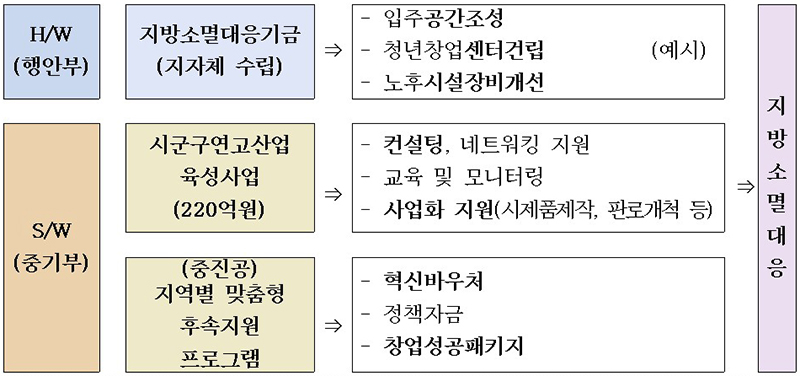 이 사업은 지역 중소기업 지원사업(SW사업, 중기부)과 지방소멸대응기금(HW사업, 행안부)을 연계해 지역기업과 일자리 중심의 효과적인 지방소멸대응 전략을 마련하는 것이다.