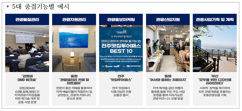 참여를 희망하는 법인은 필수사업인 생활인구 유입 증대를 비롯해 관광품질관리, 관광자원관리, 관광홍보마케팅, 관광산업지원, 관광사업기획 및 계획 등 5대 중점기능 중 1개를 자율로 선택해 사업을 지원할 수 있다.