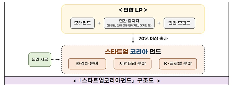 스타트업코리아펀드는 모태펀드와 대기업, 은행권, 성공 벤처기업 등 다양한 민간 주체가 공동 출자하는 구조로, 스타트업코리아의 핵심 철학인 ‘민간이 중심이 되는 벤처투자 생태계 조성’을 상징하는 펀드다.