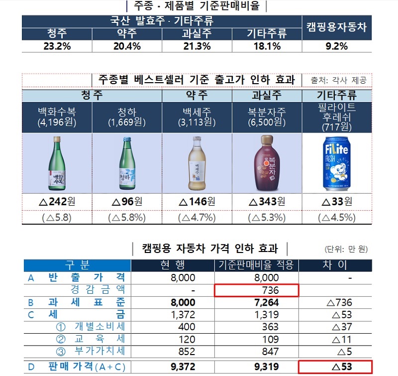청주와 약주 등 국산 발효주는 기준판매비율 적용으로 올해 2월부터 공장 출고가격이 5.8%까지 내려간다.