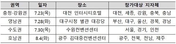 4개 권역별 개최…추진계획 공유·전문가 토론 등