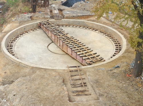 전차대는 원형의 콘크리트 구조물 내에 강판으로 된 바퀴 달린 보(트러스)를 설치하고 그 중심에 회전축을 만들어 콘크리트 구조물 하단에 부설한 원주 레일 위를 회전 운전시킬 수 있는 형태로 확인됐다.