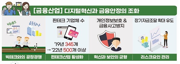 빅데이터, AI, 클라우드 등 정체된 금융산업에 새로운 성장동력이 될 수 있는 혁신분야에 대한 과감한 지원도 도모한다.