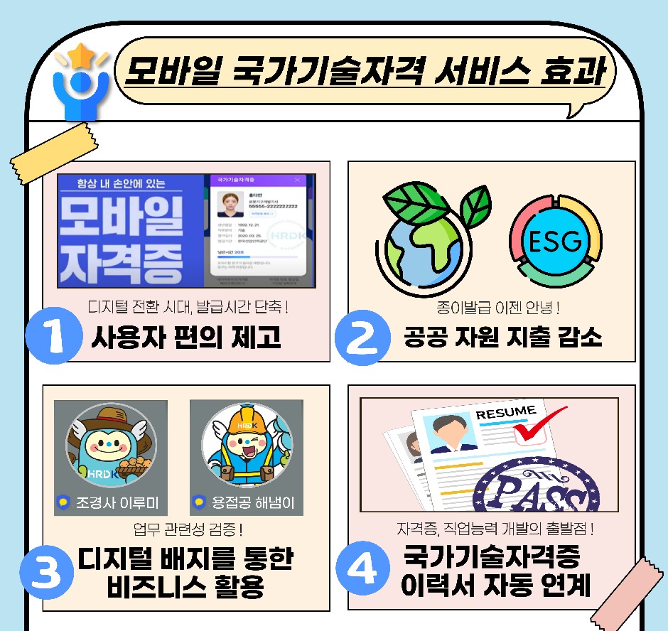 공단은 모바일 국가기술자격증 서비스와 서울특별시교육청의 스마트학생증 서비스를 연계하여, 기존 모바일자격증 활용 범위를 확대한다. ‘모바일 국가기술자격증 서비스’는 2023년 고용노동 분야 경제협력개발기구(OECD) 공공부문 혁신사례로 선정되었다.