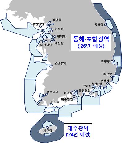 또한, 선박 교통량이 많고 사고 위험성이 높은 새만금 신항만, 부산 기장 및 거제 해역에도 관제시설을 설치하여 관제 구역 확대를 추진 할 계획이다.