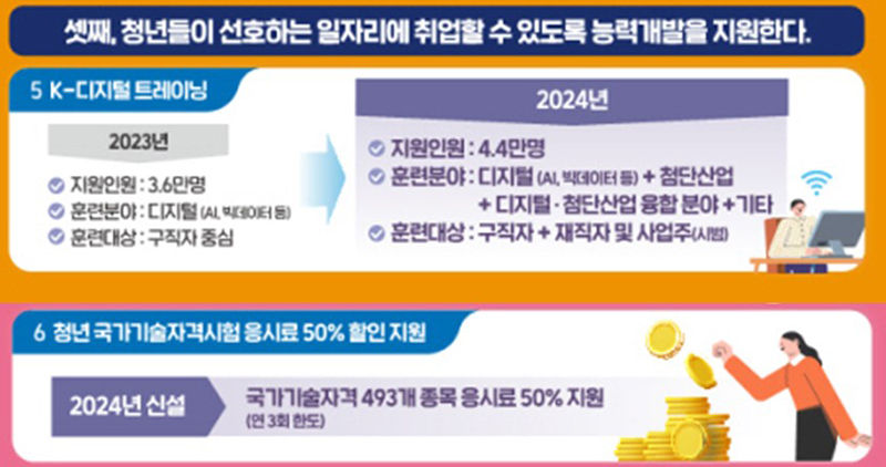 청년 수요가 높은 K-디지털 트레이닝은 3만 6000명에서 4만 4000명으로 확대한다.