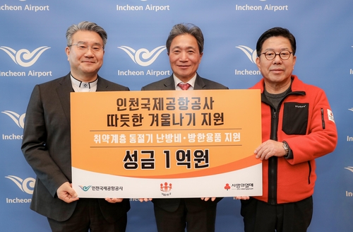 인천국제공항공사는 18일 인천사회복지공동모금회 및 (사)인천내일을여는집에 지역 취약계층 방한용품 및 난방비 지원을 위한 사회공헌성금 1억원을 전달했다고 밝혔다.
