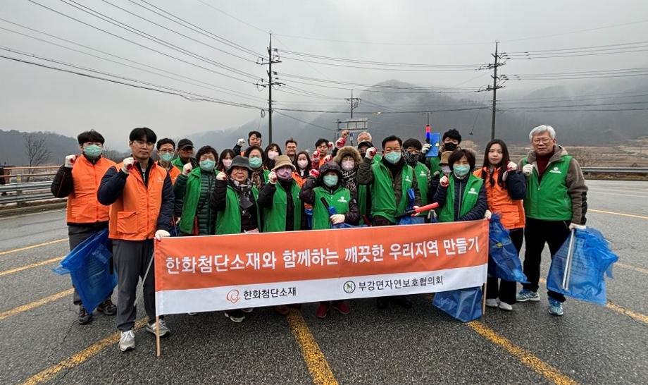 부강면 자연보호협의회는 한화첨단소재 세종사업장 직원들과 도로변에 방치된 쓰레기를 수거하며 환경정화 활동에 힘썼다.
