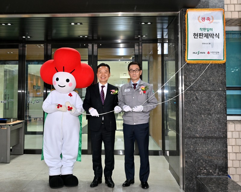 HJ중공업(조선부문 유상철 대표)이 부산사회복지공동모금회로부터 ‘더 베스트(The Best) 착한일터’로 선정되는 영예를 안고 18일 현판식을 가졌다.