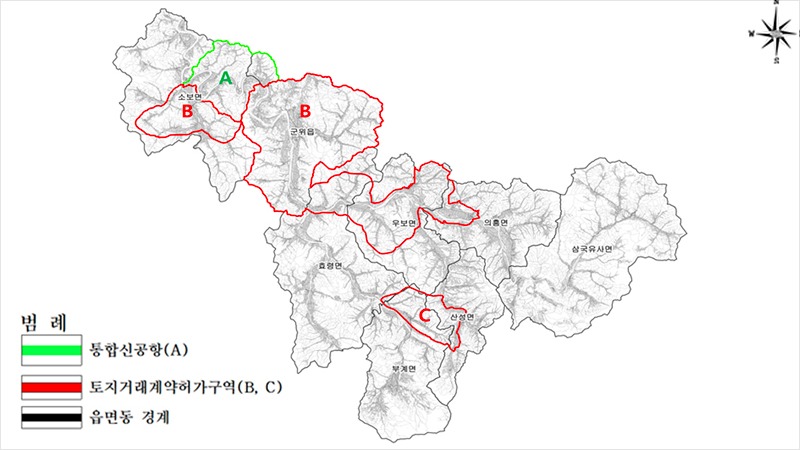 대구광역시는 2023년 7월 1일 군위군의 대구시 편입에 따라 예상되는 토지의 투기적 거래 및 지가의 급격한 상승을 예방하고, 기획부동산 사기 등을 사전 차단해 군위군민의 재산권을 보호하며, 향후 군위군 개발의 성공적인 추진을 위해 군위군 전체에 대해 2023년 7월 3일 토지거래허가구역으로 지정한 바 있으며,