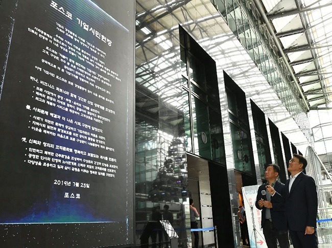한편, 회의에 이어 기업시민 실천과 성과창출을 다짐하기 위하여 기업시민헌장을 미디어 아트로 제작한 작품 제막식도 진행되었다. 세계적인 미디어아티스트인 이이남 작가가 제작한 「기업시민, 공존을 위한 빛」에는 헌장 제정일인 7월 25일의 의미를 담아 7.25m 위에서 쏟아지는 쇳물을 통해 완성되어가는 기업시민헌장을 보여줘 헌장에 담긴 포스코人의 다짐과 ‘기업시민 실천가이드(CCMS)’실천 의지를 담금질하는 의미가 담겨있다.
