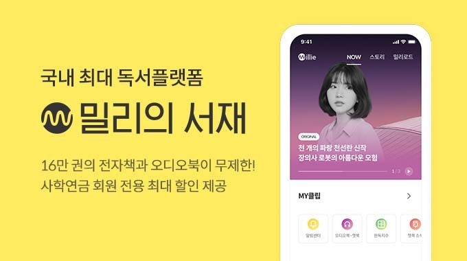 사학연금공단은 밀리의 서재 입점 기념으로 내달 21일까지 할인 이벤트를 진행한다. 프로모션 기간동안 밀리의 서재 6개월 구독권과 12개월 구독권을 더 큰 폭의 할인 혜택가로 만나볼 수 있다.
