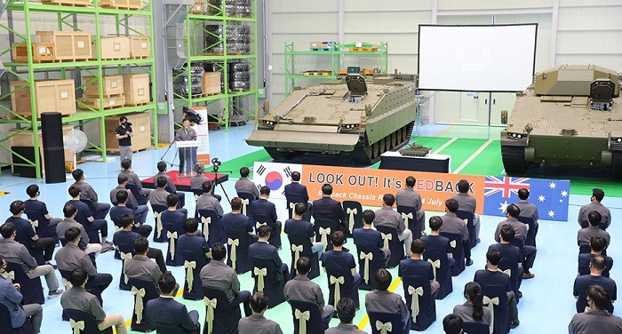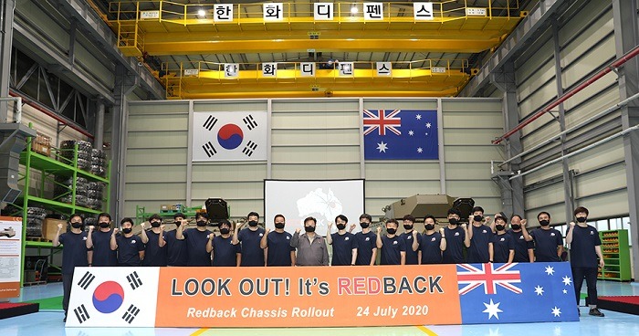 한화디펜스가 지난 24 일 호주 육군 의 궤도형 장갑차 획득 사업을 겨냥해 개발한 레드백(Redback) 장갑차 시제품 2 대를 출고 하며 호주 시장 진출의 첫 발을 뗐다.