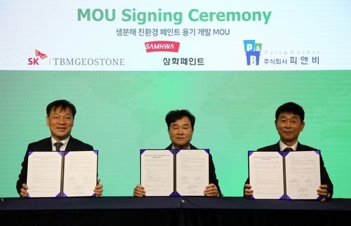 이날 3사는 ▲친환경 페인트 용기 적용 및 판매 ▲페인트 용기에 최적화된 친환경 원료 개발 및 공급 ▲페인트 용기 개발 및 제조 등에 적극 협력하기로 했다.