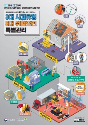고용노동부와 한국산업안전보건공단은 1월 24일 2024년 제2차 현장점검의 날을 맞이하여 3대 사고유형 8대 위험요인과 강추위로 인한 한랭질환 예방수칙 준수 여부를 점검한다고 밝혔다.
