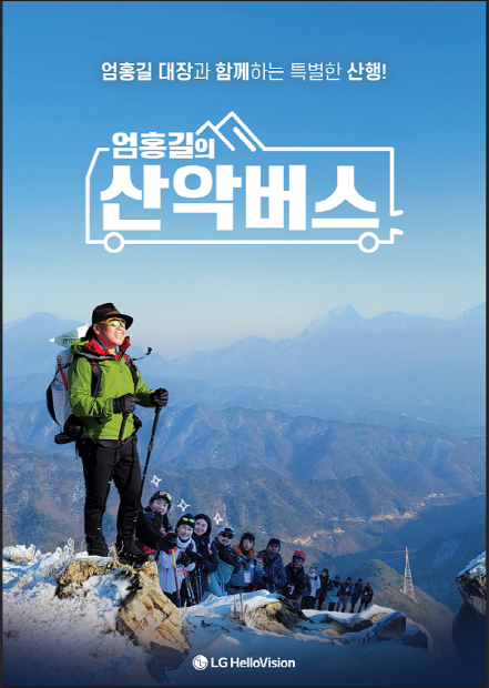 LG헬로비전은 국악방송과 공동 제작한 신규 오리지널 예능 <엄홍길의 산악버스 (이하 ‘산악버스’)>가 26일(금) 저녁 5시에 지역채널 25번에서 첫 방송한다고 밝혔다. <산악버스>는 엄홍길 대장과 국내 명산을 함께 등반하고 싶은 일반인들이 모여 등산 중심으로 이야기를 공유하는 예능 프로그램이다. 산악 유튜버 오세진 작가도 MC로 활약한다.