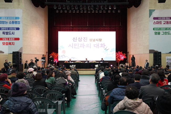 신상진 성남시장은 25 일 오후 2 시 성남종합스포츠센터 다목적체육관에서 열린 ‘2024 년 시민과의 새해 인사회 ( 중원구 )’ 에서 1 천여 명의 시민을 직접 만나 동별 건의 사항을 청취하고 답변하는 시간을 가졌다 .